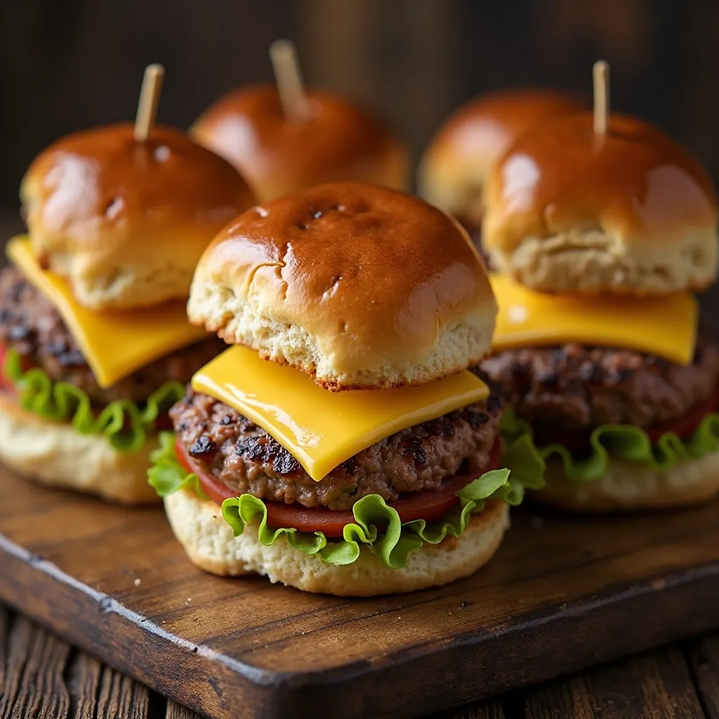 Step 5: Assemble sliders with lettuce, patty with cheese, tomato, pickles, ketchup, and mustard. Secure with toothpicks if needed.